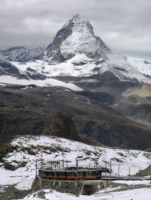 Der Gornergrat stellt die Endstation der 1898 eröffneten Gornergratbahn dar. Die Talstation liegt direkt am Zermatter Bahnhof. Die Strecke führt durch romantische Wälder, über spektakuläre Brücken und durch eindrucksvolle Tunnel in ca. 9 km Länge auf den Gornergrat. Die Bahn überwindet dabei einen Höhenunterschied von knapp 1.500 m.
